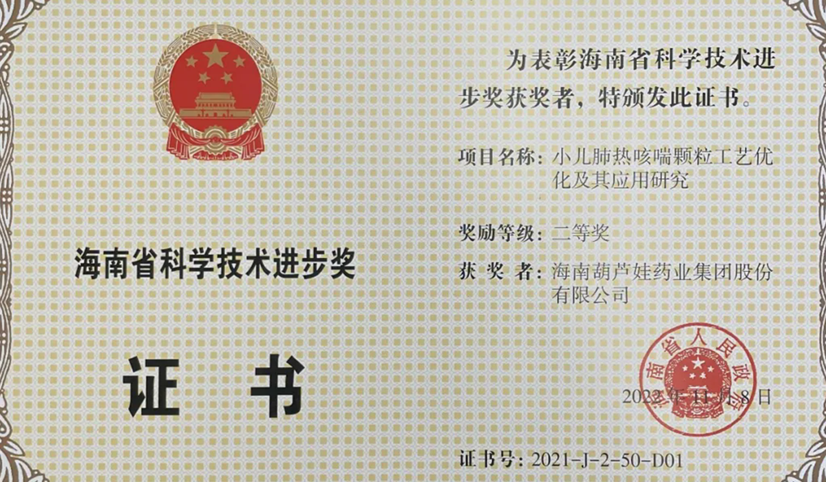 尊龙卡Z6药业集团申报的专利“克咳片及其制备方法”荣获 第四届海南省专利奖金奖