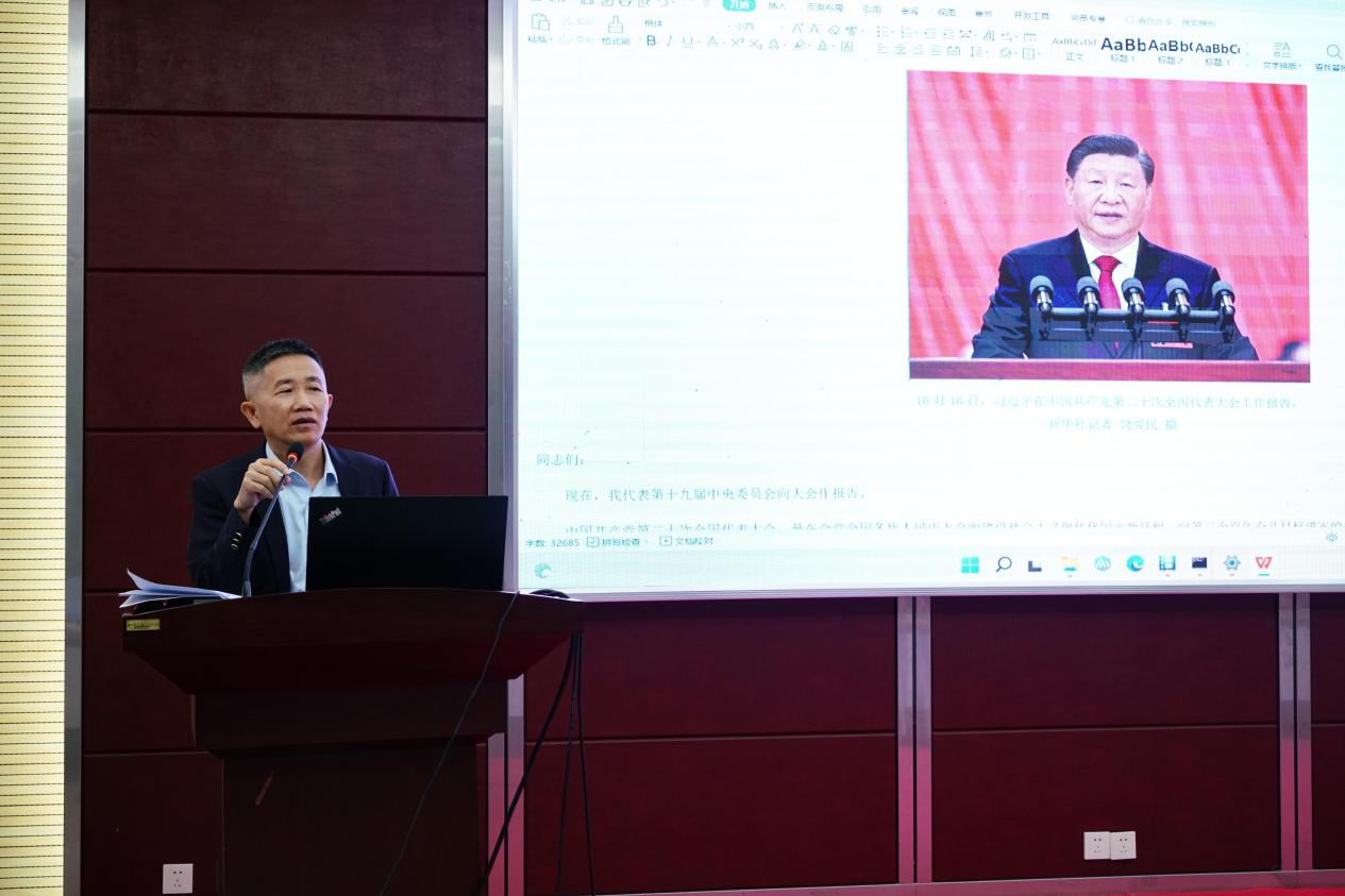 生产副总经理李培湖向与会人员传达学习党的二十大精神